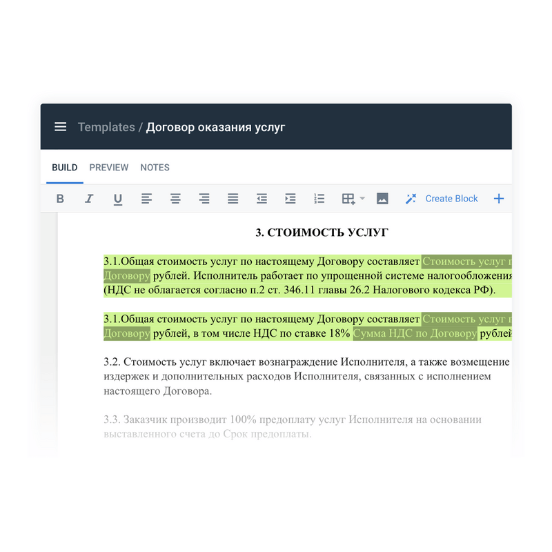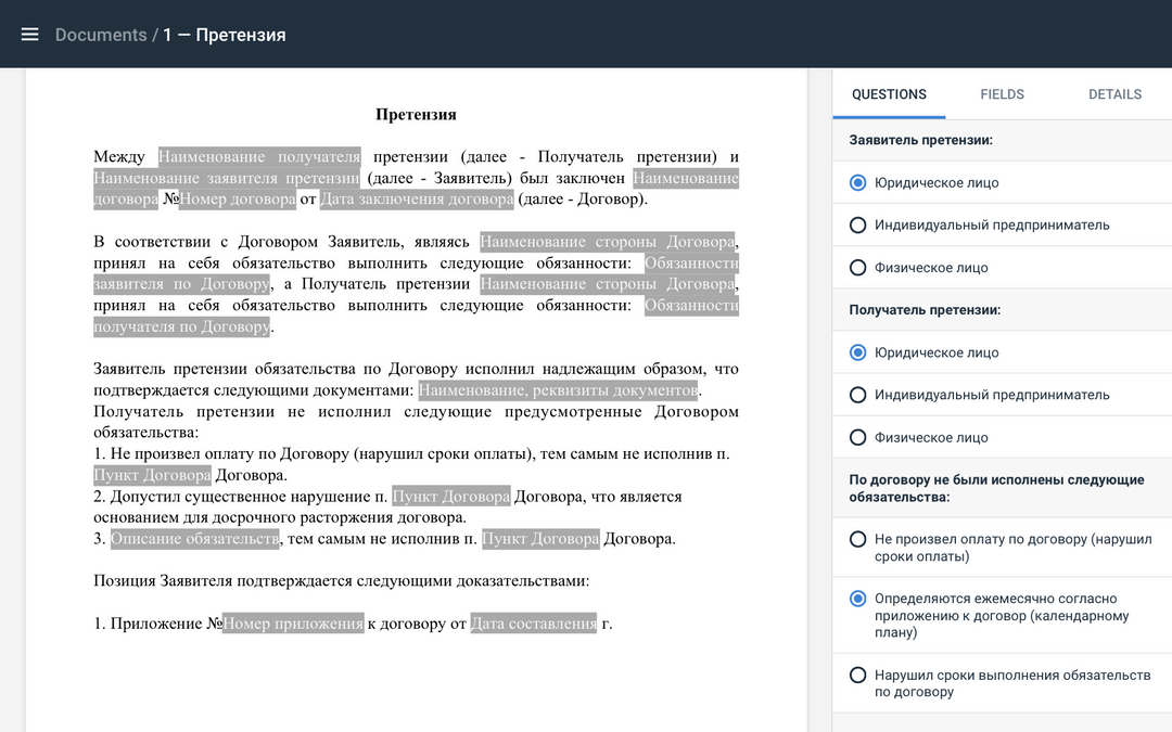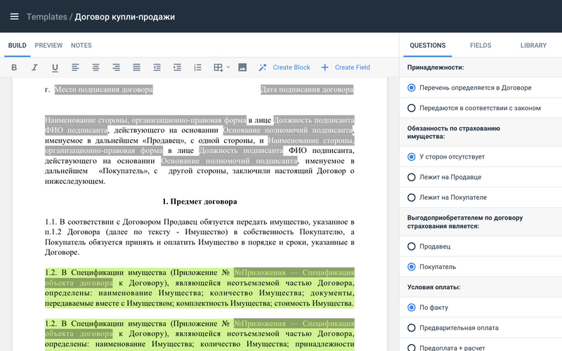 Сервис позволяет снизить нагрузку на юристов по подготовке и проверке типовых договоров и сэкономить до 60% времени для решения действительно сложных задач. Большинство шаблонов можно сделать универсальными, чтобы на их основе любой сотрудник компании мог самостоятельно создать грамотный типовой документ за 1 минуту.