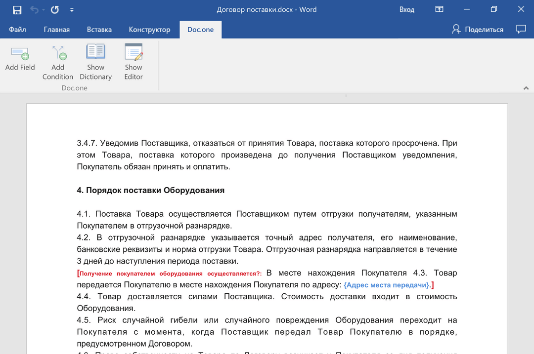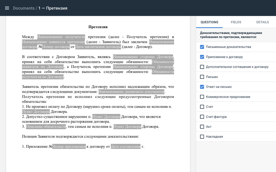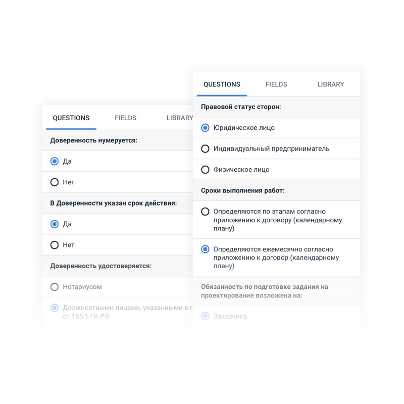 В зависимости от выбранных условий в опросном листе тело документа будет меняться, а содержание подстраиваться под конкретную бизнес-ситуацию.