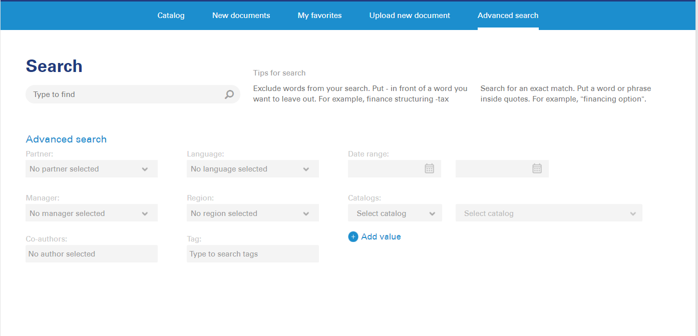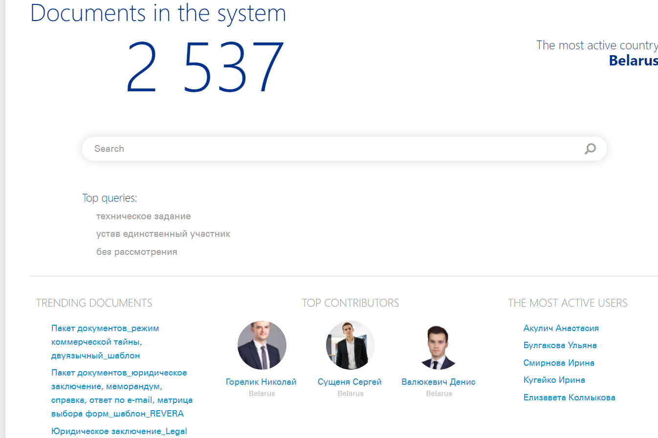 - Доступна удобная система поиска, функциональность которой расширена благодаря добавлению тэгов к документам, перечень которых задается и управляется администратором.